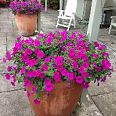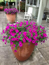 Lisa has finally been able to get some Spreading Petunias from Oasis. We are not sure why they have been so hard to get this spring. There was talk that part of their nursery at Winmaliee got damaged by the recent bush fire. These ground cover Petunias really are amazing. I have grown them in big terracotta urns at my place and they are looking spectacular for Christmas. I only planted one plant per pot and tip pruned them a couple of times at the start to make the plants bush out. Each plant has grown one metre wide and they are covered in bright purple flowers.