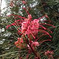 It is called Grevillea Ellegance and it hasn’t stopped flowering for 20 years or more. It has grown into a small tree about 6 metres high by 6 metres wide.