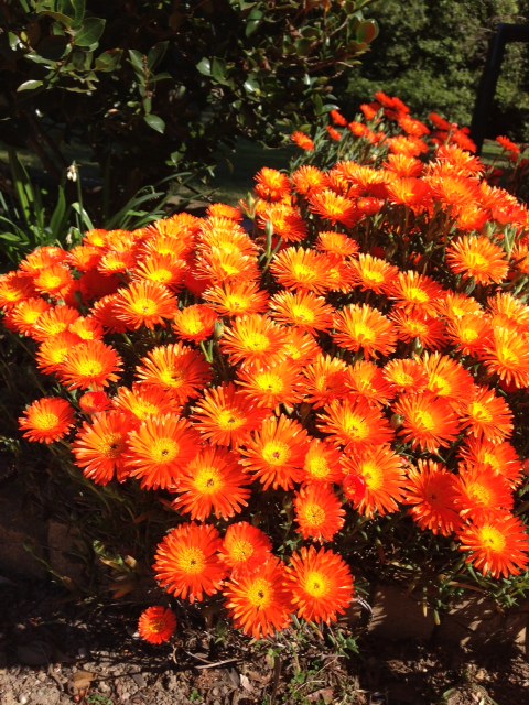 Pig’s favourite plant, Pig Face has started in flower. The Orange flowering variety always flowers first then the other colours soon follow.