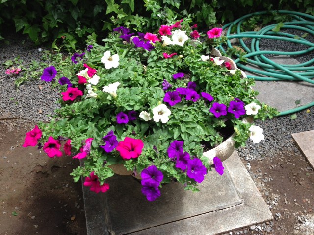 A few years ago while holidaying in Italy I found a huge pot that had been planted up with several colours. It looked so good I had to take a photo so I could show you.