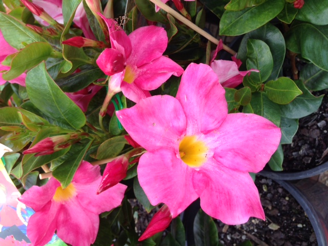 He did water them at least once a week and during summer they got watered twice weekly. Dipladenias have been renamed Mandevilleas but they are more like a shrub.