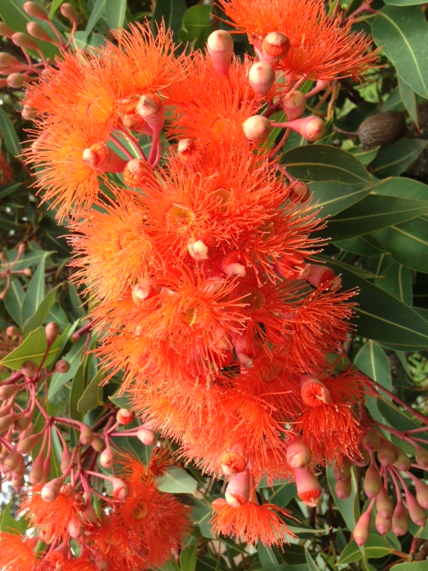 I have been noticing Grafted W.A Gums flowering every where. There is a beautiful orange flowering variety in the motel next door to our nursery. We sold it to them about 5 years ago and it is covered in bright orange flowers just in time for Christmas.