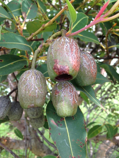 These are produced after flowering and they have been hanging from the tree for 12 months. This is another feature of this native plant. The grafted trees can flower the first season and the colour is guaranteed.
