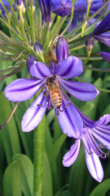 Agapanthus has come into flower for Christmas. They might grow like weeds but I still love the flowers and so do the bees.