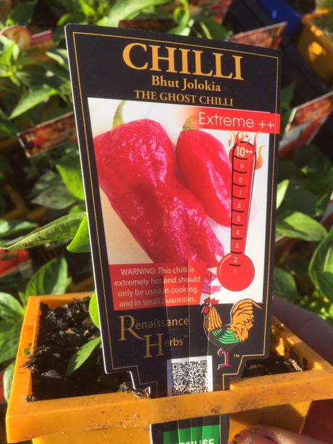 I don't understand the desire to have chillies that will burn your bum but we are meeting the demand here at Tim's. Lisa has The Ghost Chilli available this week. It has a heat rating of 10/10. We have more friendly varieties available too. We will also have the Butch T variety that has a 15/10 heat rating in a couple of weeks.