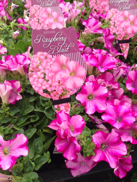 Petunia Raspberry Blast is back in stock too. This low spreading Petunia has pink flowers with s raspberry edge. It flowers non stop for 9 months! Again a great plant for pots or hanging baskets in the sun.