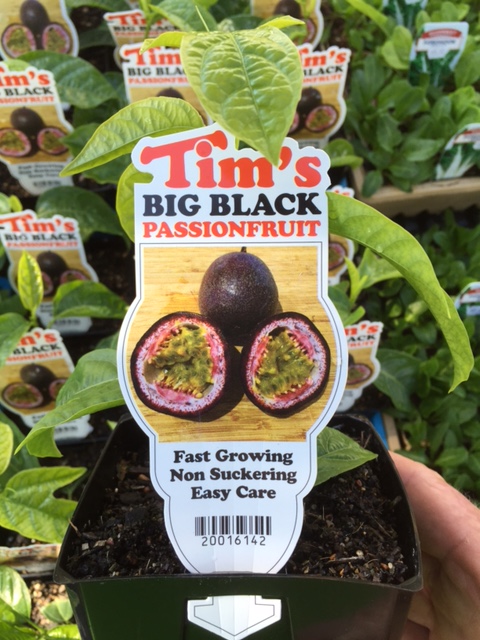 Out Tim's Big Black Passionfruit vine is selling like crazy. It seems everyone is sick of those grafted varieties that pop up everywhere and become weeds. This new seedling grown variety has huge sweet tasting Passionfruit without the work.