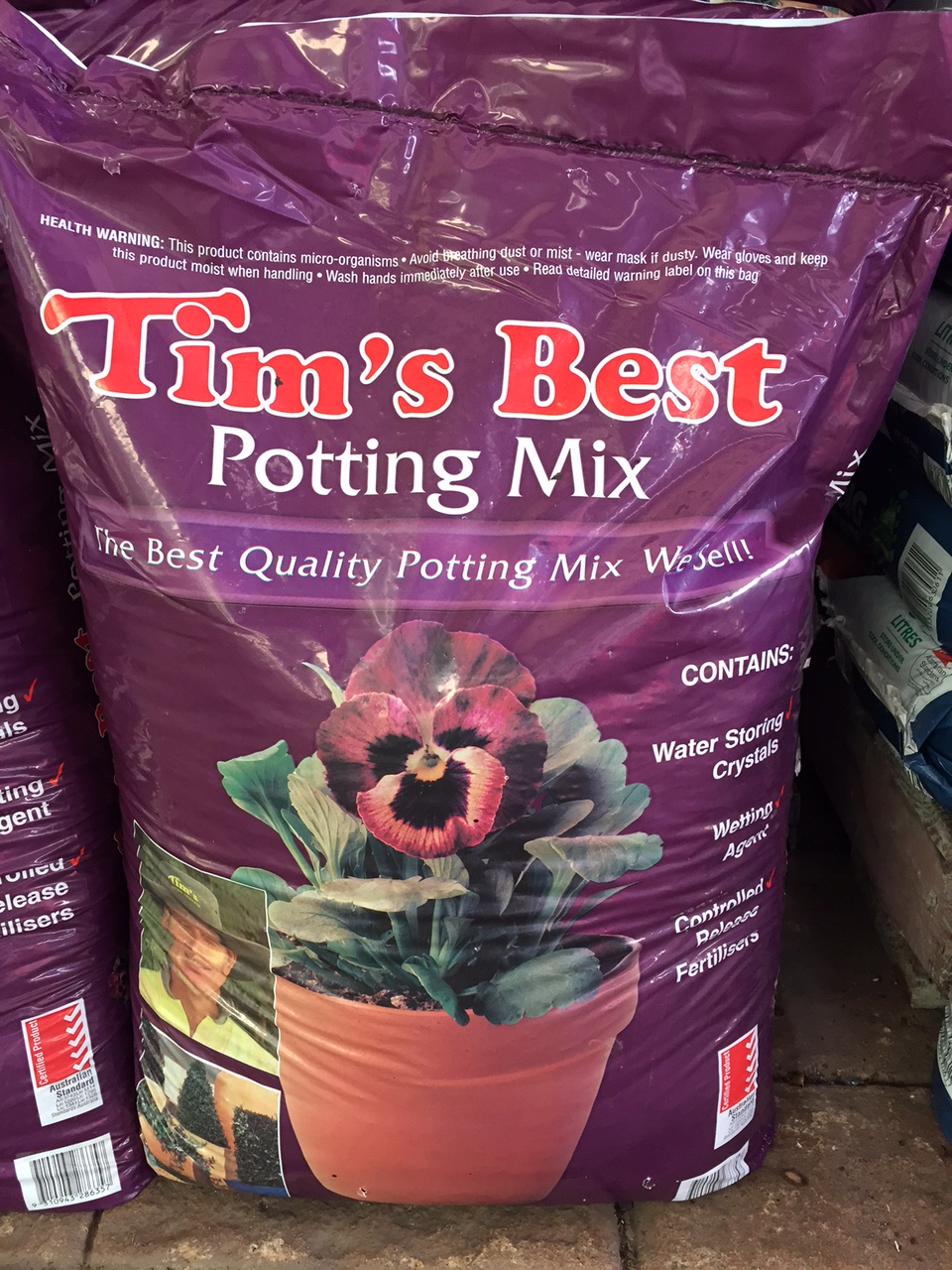 Repot these plants into bigger pots or take them out of the pots and cut 20% of the roots off and then put it back in the same pot using Tim’s Best Potting Mix. Saucers can also help pot bound plants survive the heat. Wettasoil all your pot plants and gardens now. Mulch your pots with Sugarcane.