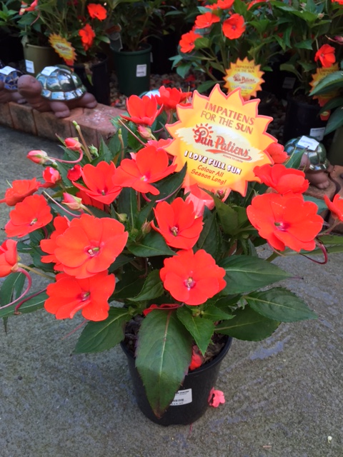 One of my favourite plants at this time of year are the New Guinea Impatiens, They have large glossy green leaves and bright coloured flowers that really catch your attention.