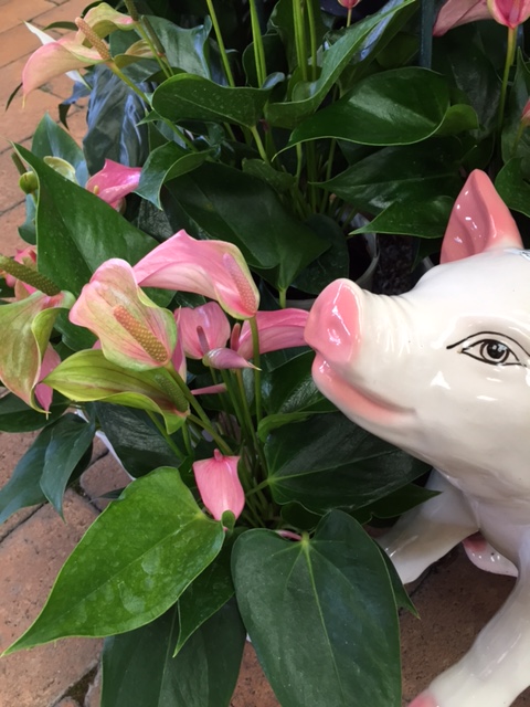 Anthuriums or Flamingo Flowers are also one of my favourite indoor plants. These have amazing shiny dark green heart shaped leaves with even more amazing flowers. Traditionally they come in red but this year we have the pink flowering varieties too. These seem to be pig’s favourite too. These are super hardy indoor plants and they will flower throughout the warmer months if they get enough light. Remember if you close up all your curtains during the day then your indoor plants will not grow.