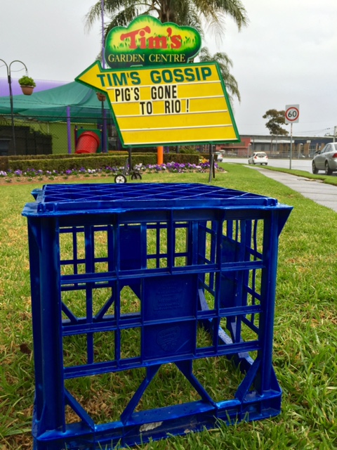 It has been so cold and wet here this week poor Pig chucked a sickie. We ran a competition on Facebook to see who could come up with the best excuse for Pig and Narelle Barr won with "Pig's Gone to Rio!" We had a huge response from our followers with almost 80 comments. Narelle won a Tim's Fast Food Fertiliser and we put her sign on display.