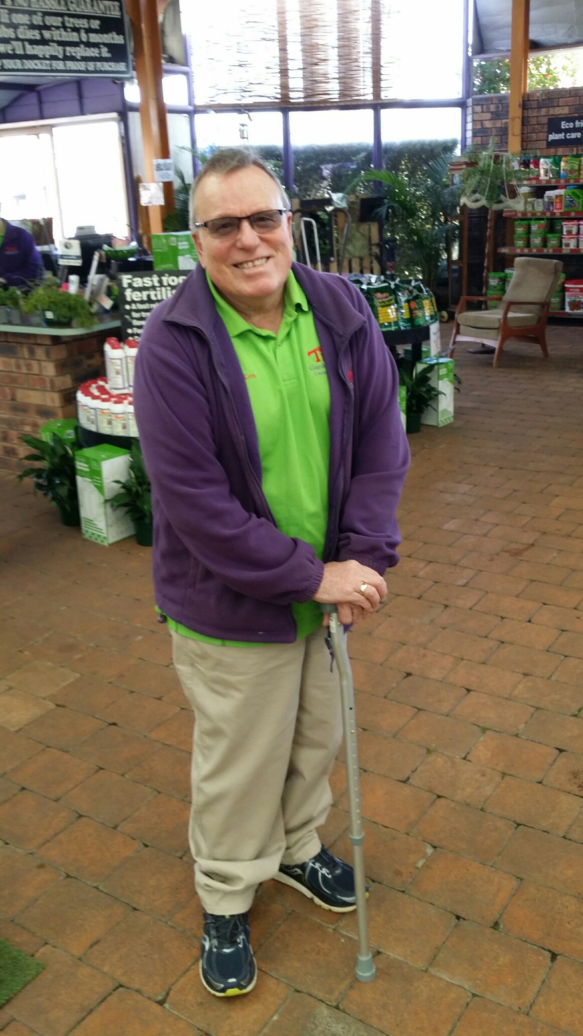 Ken has made the return to work today after twelve months off. You may remember Ken was involved in a car accident and was injured.Recovery was slow but he is ready to help you out with all your gardening advice. Ken says it is great to be back!