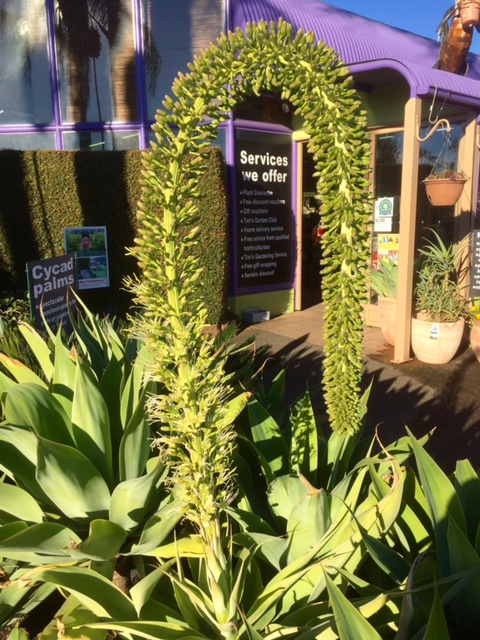 We got a big surprise last week when one of our Agave burst into bloom. Have you ever seen a flower spike like this? None of the other Agaves have flowered so this one must be a bit special. Even I have flower envy!