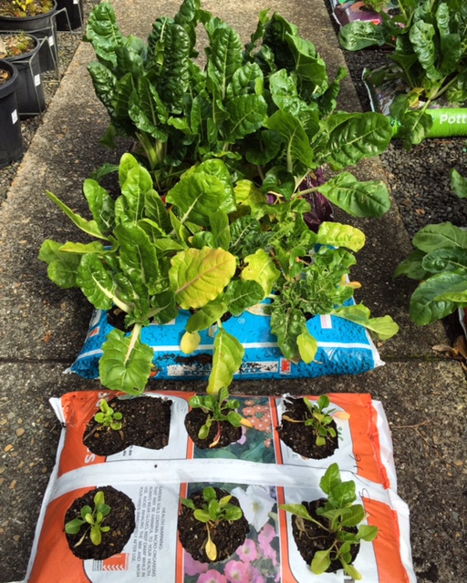 A potting mix supplier is after our business  so I asked the rep to give us some bags of their Premium Potting Mixes so we could trial them. We planted Silver beet seedlings directly into the bags. We planted seedlings in our Tim's Best potting mix at the same time to see which potting mix was the best. The results have been amazing. Check out the photo. Our Tim's Best Potting Mix is at the back.