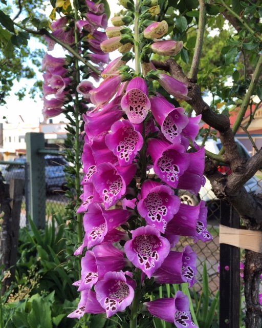 While in Hill Street I noticed these amazing Foxglove plants growing in the Chiropractors garden. These old fashion flowers really put on a floral show and I think we all should be planting them again. The flowers have freckles so perhaps that's why I love them so much. We have some in pots in the nursery if your garden needs some freckles!
