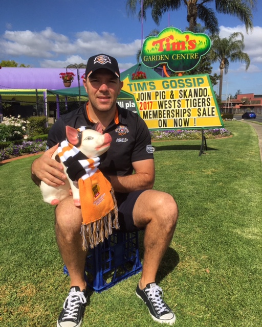 Everybody knows that Pig is Wests Tigers number one supporter and this week John Skandalis came out to present pig with a 2017 team scarf. We are all a little jealous of pigs scarf today as the temperature plummets to Melbourne like conditions. Pig and Skando have been mates for years so pig was more than happy to share the milk crate with this league legend. There has never been a better time to get on the West Tigers Bandwagon as this young team starts to blossom.