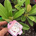 We have a dwarf Frangipani called Darwin Petite Pink. This evergreen variety has smaller leaves and a more compact shape making it perfect for smaller gardens.
