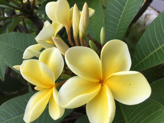 Frangipanis grow best up against a north or western facing brick wall. The wall heats up during the day and creates a micro climate that helps protect the plants from the winter cold. They also grow well in big pots on sunny patios. Put two varieties in the one pot for a floral feast over Christmas.