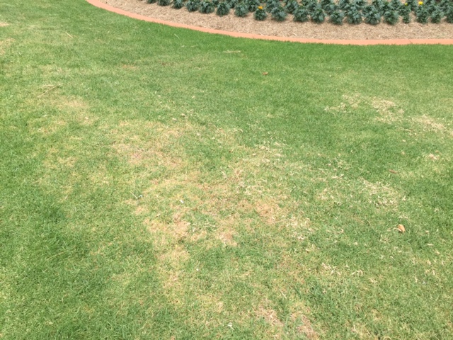 Lawns are turning yellow due to the dry weather. It's interesting how it dries out in patches first. Some Gardeners think that their lawn must be getting eaten by curl grubs. What happens is the soil gets so dry it becomes hydrophobic. If it doesn't rain then the grass in these patches dies.