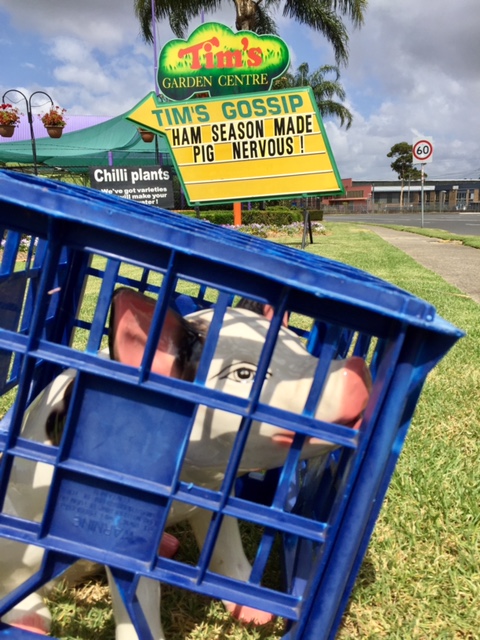 Pig's gone into hiding this week as ham season arrives. Poor pig counts his legs every day leading up to Christmas.