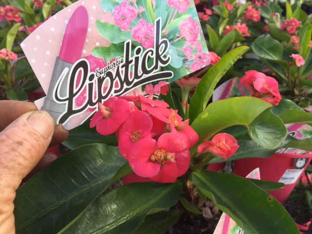 We have Lipstick Euphorbia's growing out the front of our shop in terracotta pots and they seem to flower every day of the year. This succulent plant can survive on rain water only during normal weather, but when its dry like it is now, you should water it at least once a week. This plant is almost death proof so if you're a brown thumb then try one of these. Plants cost $18.99 and they are covered in hot pink flowers right now. In winter stop watering this plant for best results.