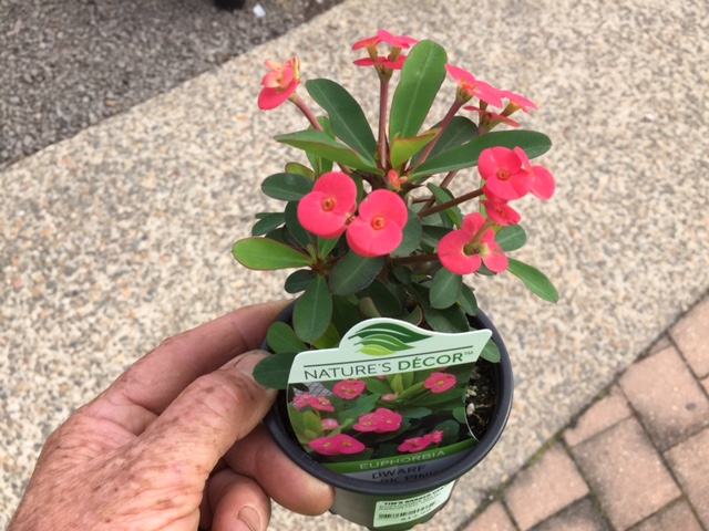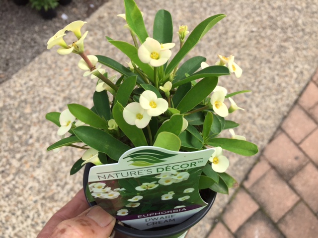 You probably know by now that I love Euphorbias. These drought hardy plants flower non stop in pots and gardens during the warmer months. We have two new varieties that have cute little red or white flowers. They would make perfect Christmas gifts and they only cost $12.99. They are perfect in pots in sunny spots. Even Brown Thumb gardeners will have success with these. You could plant a red and a white flowering variety in the one pot for a Christmassy effect. Come see.