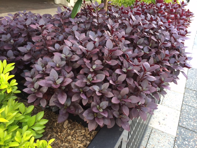 Campbelltown Council is having great success growing this little ground cover plant called ' Little Ruby". It has beautiful red foliage and it makes a beautiful border. It seems to be very hardy because its growing in the planter boxes in Queen Street and they don't get watered all that often. We have nice plants for just $8.99. The red foliage contrasts beautifully with yellow leaf plants like Golden Duranta.