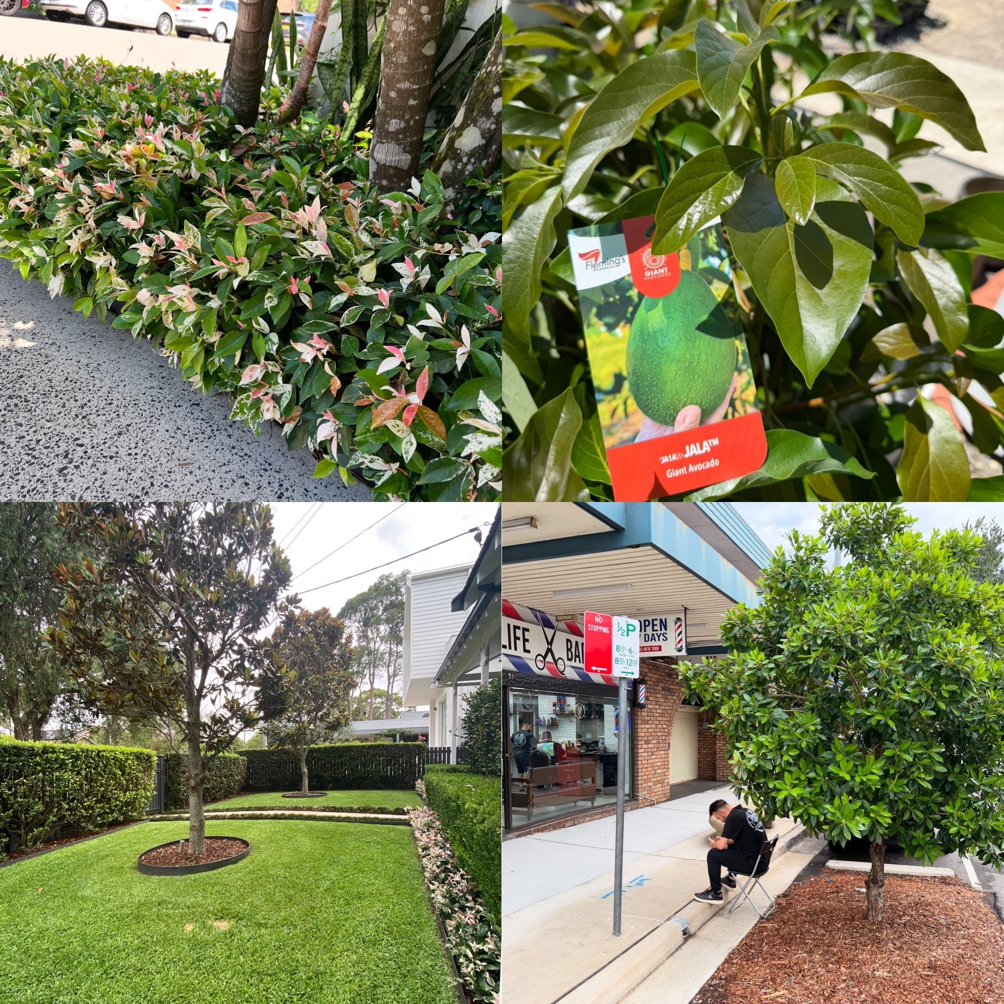 I often drive past this Hairdresser in Dumaresq st in Campbelltown, and there's nearly always someone sitting under this native tree. They have a little fold up chair and they sit in the shade of this beautiful glossy green tree. They sit here and wait for customers to arrive.